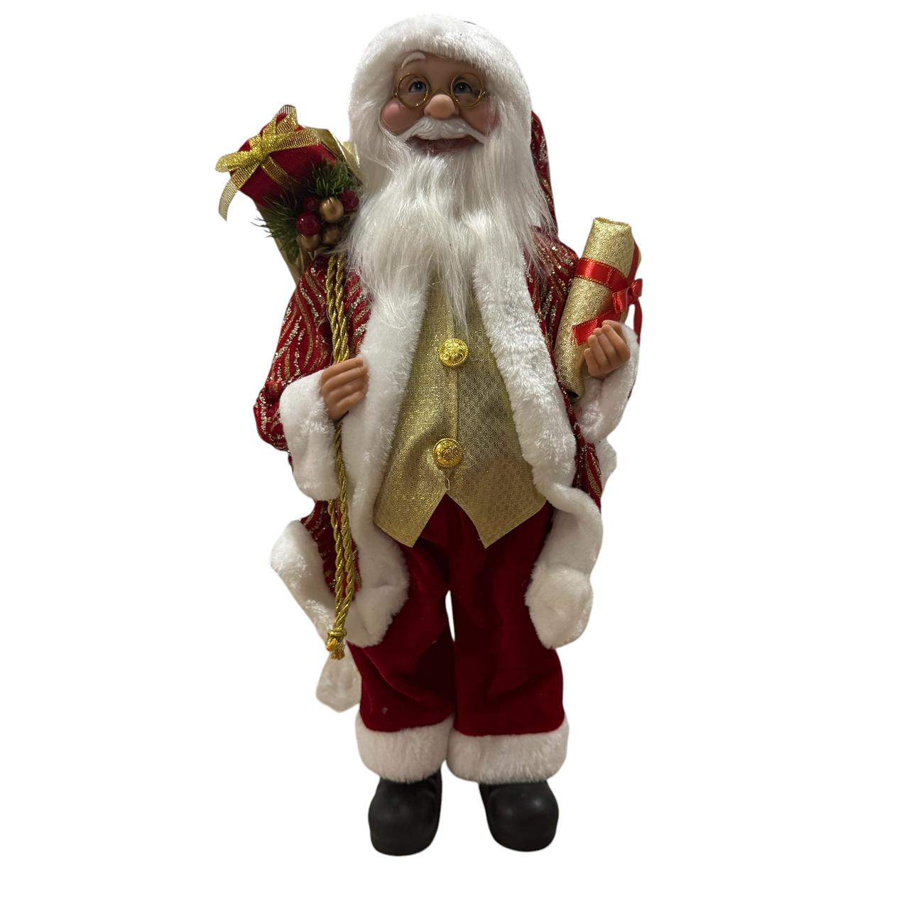 Papa noel de alto estilo, con detalles de lata costura y excelentes terninados. Altura : 48 cm